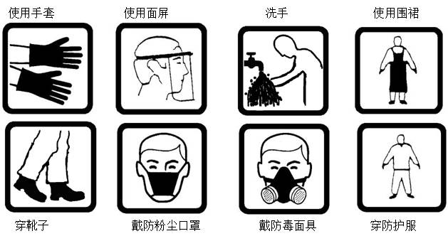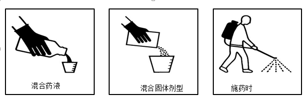 每種產(chǎn)品標(biāo)簽都會說明在測量/混配和施藥時需要的防護(hù)裝備,這些信息會以象形圖來展示為了幫助所有產(chǎn)品使用者可以完全理解,在以下圖示操作時的防護(hù)要求。