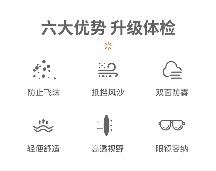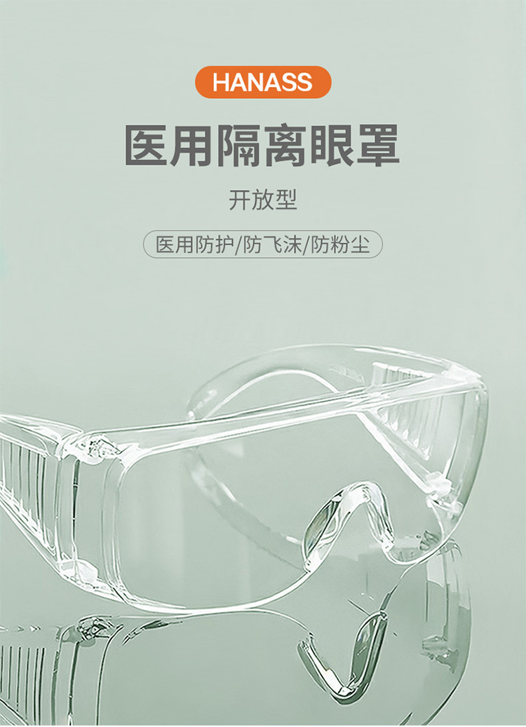 海納斯醫(yī)用防塵防護(hù)眼鏡六大優(yōu)勢升級體檢,防止飛沫、抵擋風(fēng)沙、雙面防霧、輕便舒適、高透視野、眼鏡容納。