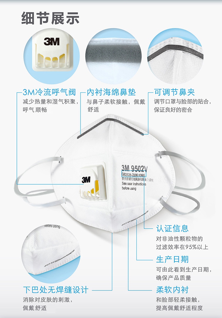 KN95型3M防塵口罩,折疊耳帶式3M口罩,特有冷流呼氣閥,適合濕熱環(huán)境長(zhǎng)時(shí)間佩戴。