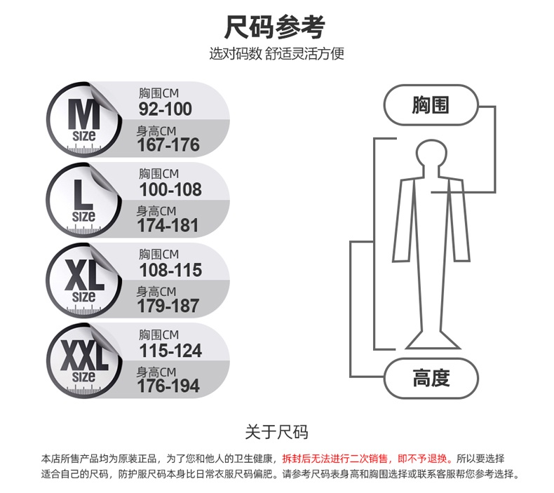 這種個(gè)人防護(hù)裝備套裝提供多種工人保護(hù)和便利性。為了更合身,它配備了一個(gè)帶有胸巾的三片式遮光罩設(shè)計(jì)。兩個(gè)門襟與雙色拉鏈組合創(chuàng)造雙重密封,增加保護(hù)。拇指環(huán)為高空作業(yè)提供了安全性。當(dāng)佩戴手套打開和關(guān)閉拉鏈時(shí),大拉環(huán)使工人能更好地控制。彈性腰部用膠粘附,使污染物的潛在侵入點(diǎn)最小化。手腕和腳踝的松緊設(shè)計(jì)增強(qiáng)自然活動(dòng)。