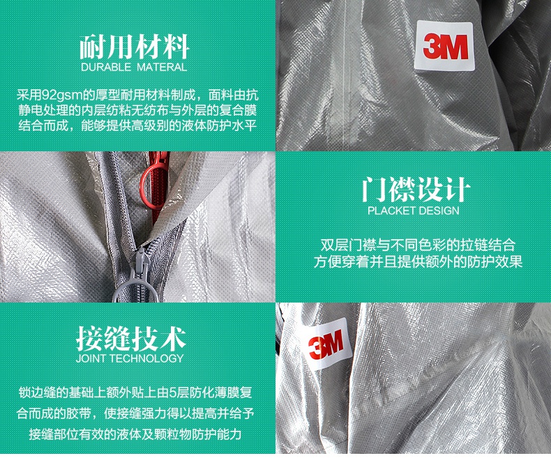 3M防護(hù)服專門用于工業(yè)場(chǎng)所,作為一種防止皮膚在某些工作環(huán)境中與液體飛濺和灰塵接觸的物理屏障。通常用于化學(xué)制品混合和處理、化學(xué)制品/石油泄漏和清理、金屬冶煉、金屬蝕刻、有害廢棄物整治、消除污染/基地停用、油艙清洗、感染源/生物危害、處理有毒粉末等領(lǐng)域。