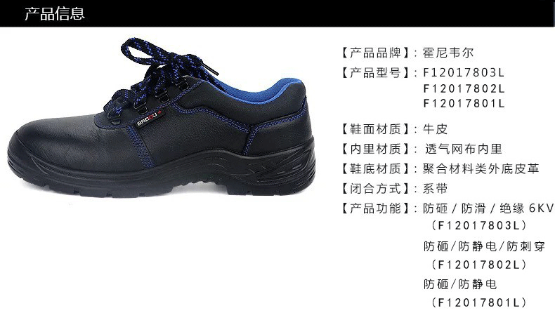 霍尼韋爾F12017803L F1系列低幫防砸電絕緣安全鞋采用優(yōu)質(zhì)頭層牛皮,具有良好透氣性;