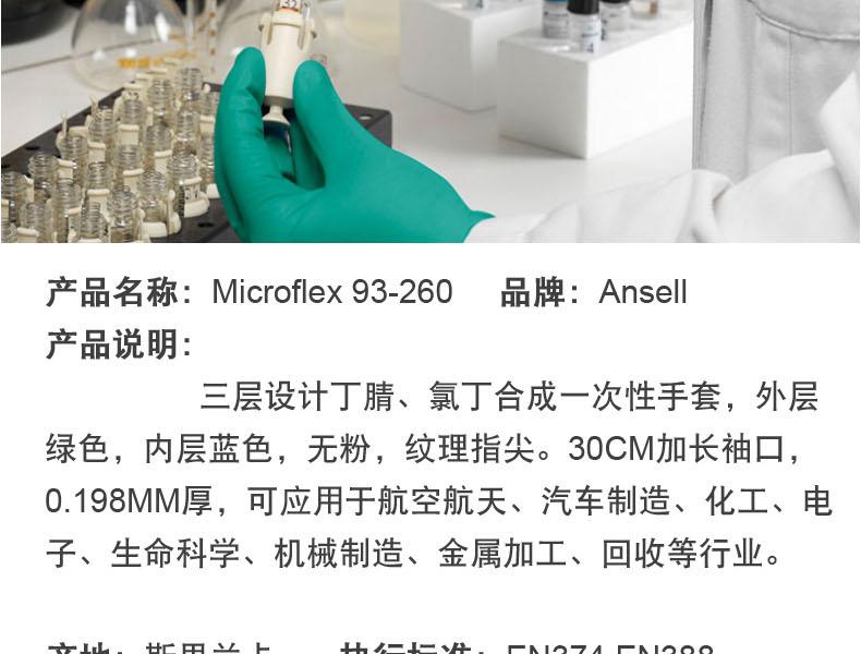 Ansell安思爾93-260MICROFLEX丁腈手套主要特點(diǎn)與優(yōu)勢(shì):三層設(shè)計(jì),有效防護(hù)刺激性化學(xué)物質(zhì)