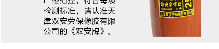 雙安絕緣靴電絕緣膠靴由橡膠加工而成,絕緣、防滑、耐磨,適用于25KV以下電力、電器設(shè)備施工維修作業(yè)時作為輔助安全用具。
