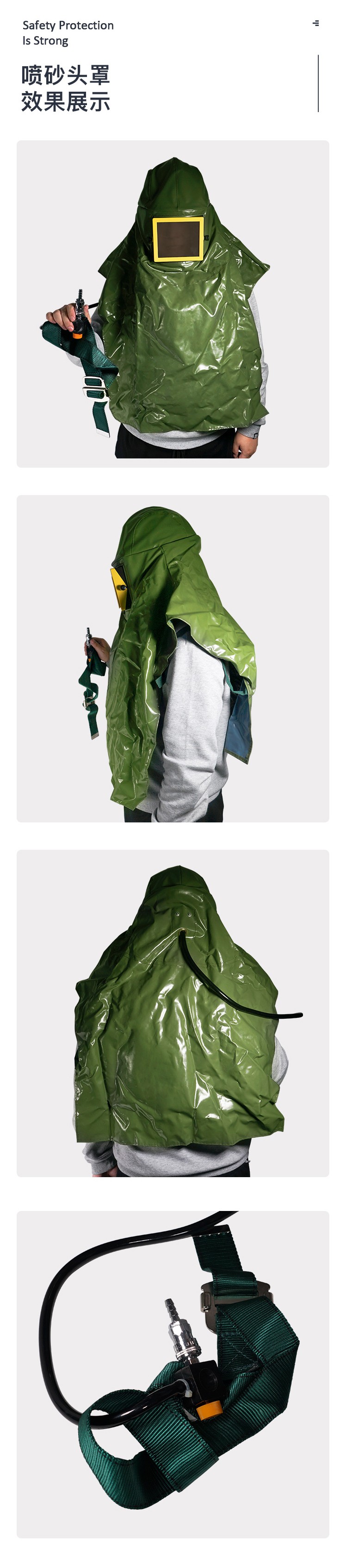藍鷹噴砂頭罩是在噴砂工作時使用,內(nèi)附安全帽保護使用者頭部,附有空氣供應管及氣流調(diào)節(jié)器,頭巾內(nèi)雙層設(shè)計,鏡片可由外側(cè)快速更換。
