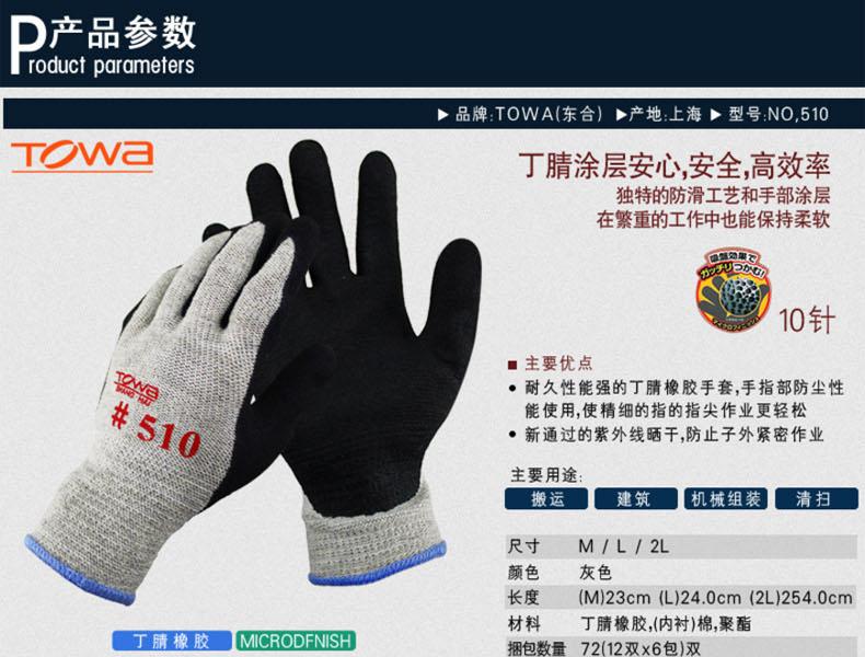 TOWA510丁腈涂層勞保手套耐久性能強(qiáng)的丁腈橡膠手套;