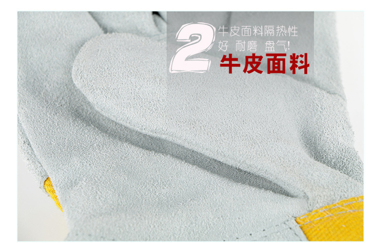 星工XGS-P1焊工耐磨手套采牛皮加強掌面,抗熱傳導(dǎo)同時可防止少量金屬濺射;加長護腕,手套可覆蓋衣袖,給手部保護;做工精細,重要部位采用雙線縫制,手指間做了加固處理,耐磨不易開線。